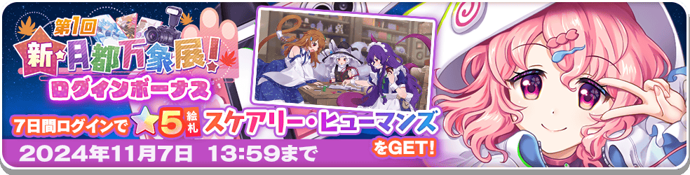 「東方LostWord」をご利用いただき、誠にありがとうございます。 2024年10月29日のメンテナンスにて、 下記内容の更新を実施しました。 ◆アップデート内容 東方LostWord 4.5thアニバーサリー!