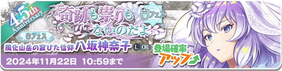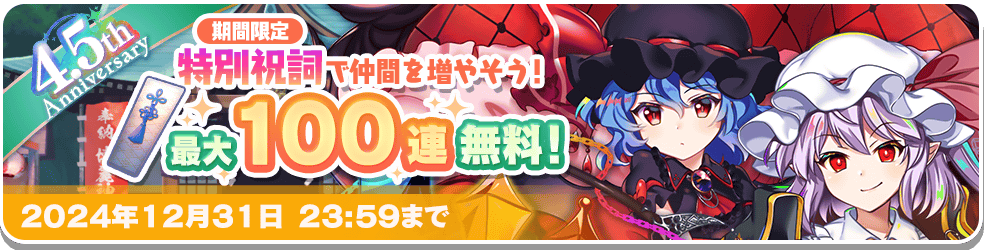 「東方LostWord」をご利用いただき、誠にありがとうございます。 2020年4月30日より配信を開始した「東方LostWord」は、2024年10月30日に4.5周年を迎えます。 4.5thアニバーサリーの感謝といたしま