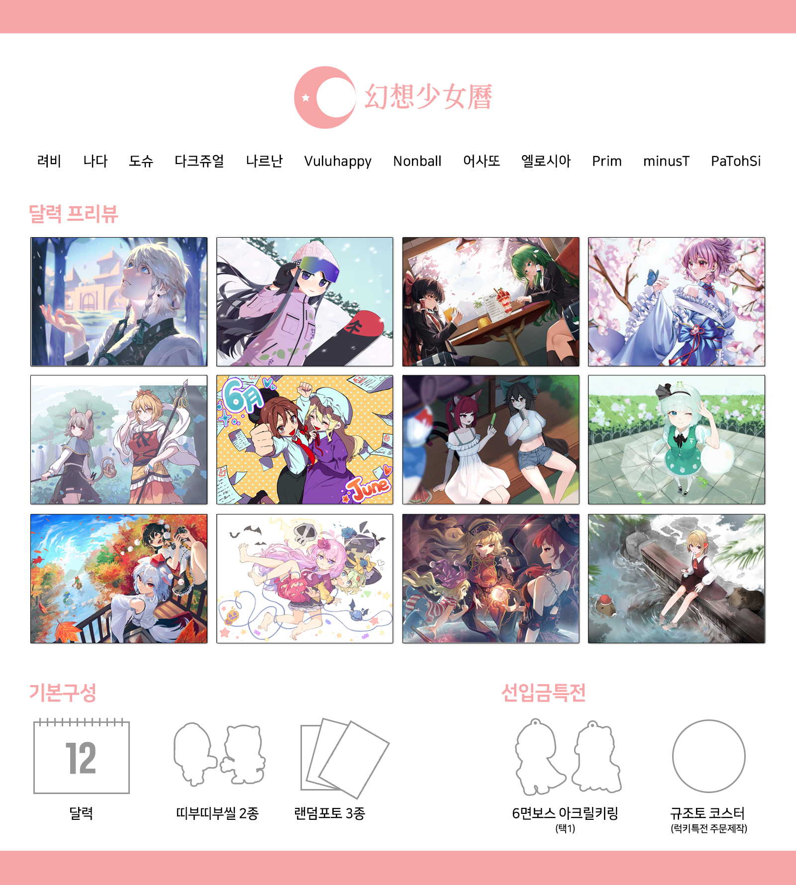 2025년 동방프로젝트 달력 <환상소녀력> 선입금 예약을 진행합니다😄 선입금 수량 외에 초 소량만 제작하여 오프라인 행사에서 판매예정입니다. 많은 관심부탁드려요 🫶🩷