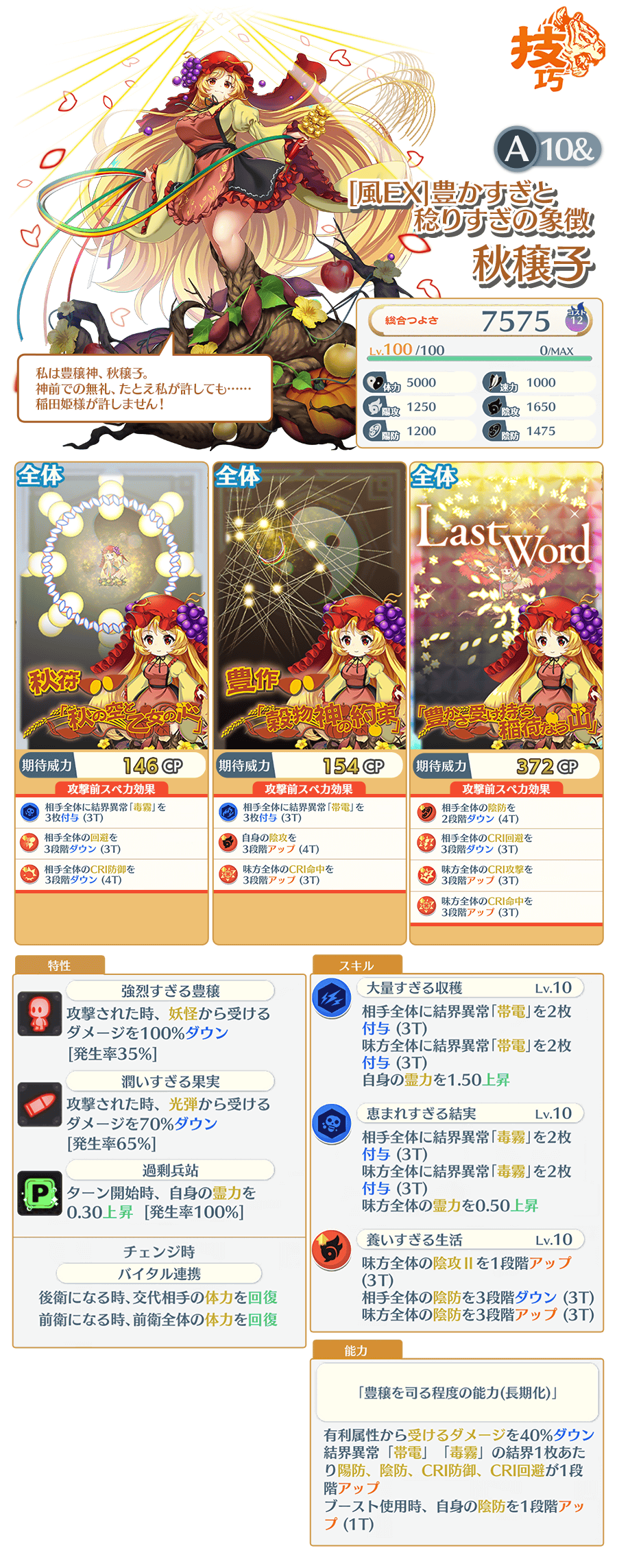 [風EX]豊かすぎと稔りすぎの象徴 秋穣子(A10&)