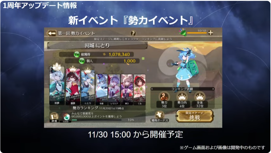 11/30 개최 예정인 신규 이벤트 : 세력 이벤트