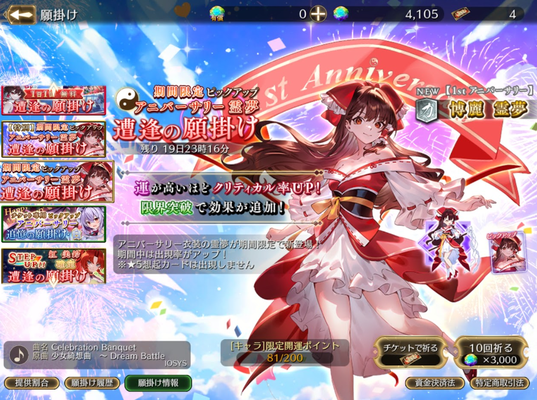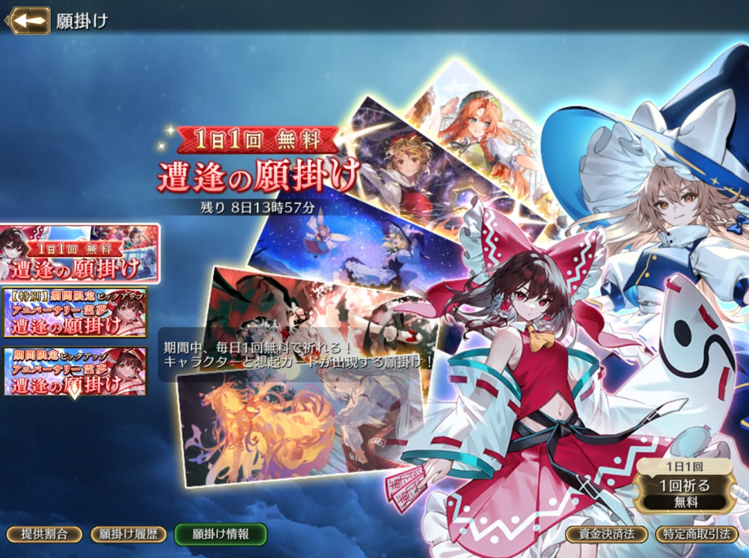 「期間限定 アニバーサリー霊夢 ピックアップ 遭逢の願掛け」