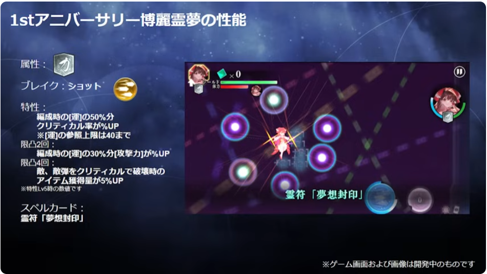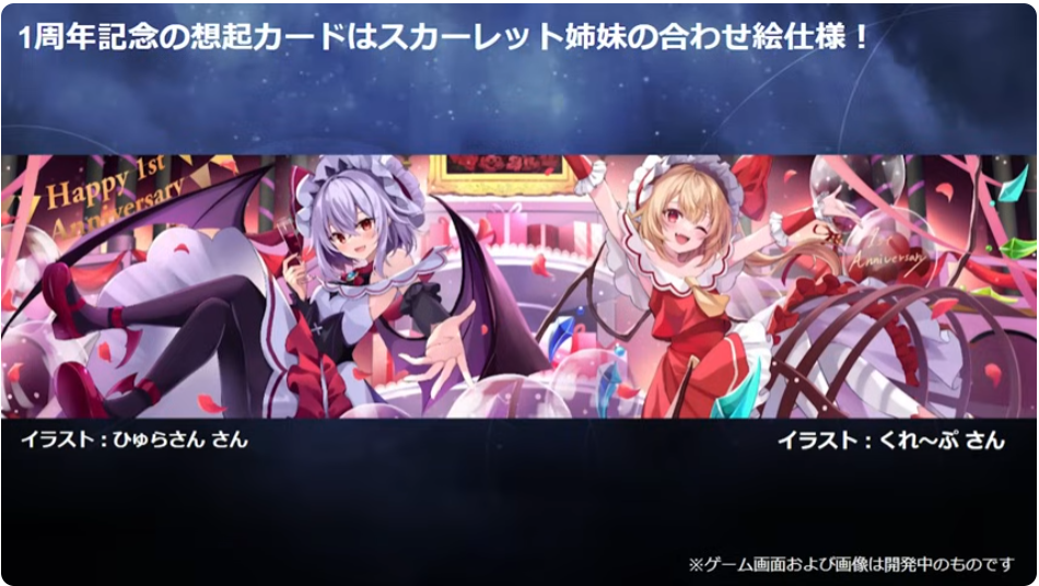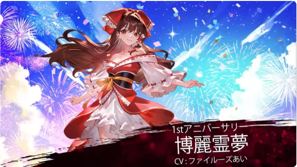 1주년 기념 캐릭터(레이무)의 추가와 관련 이벤트, 신규 상기카드 추가 등의 갱신이 있었습니다.