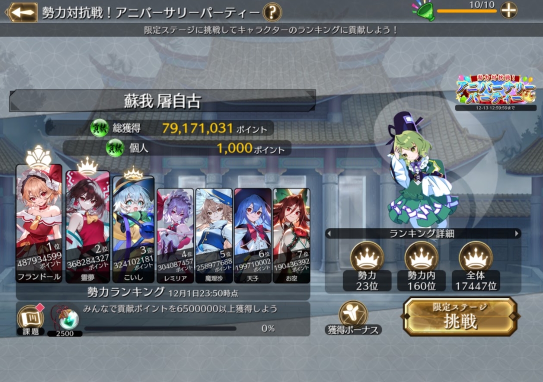 イベント「勢力対抗戦!アニバーサリーパーティー」