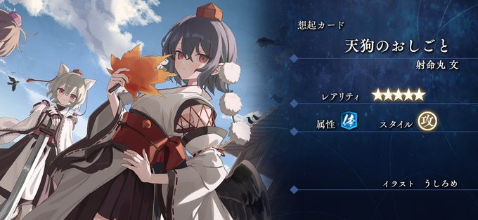 「射命丸文 ピックアップ 追憶の願掛け」で登場します!