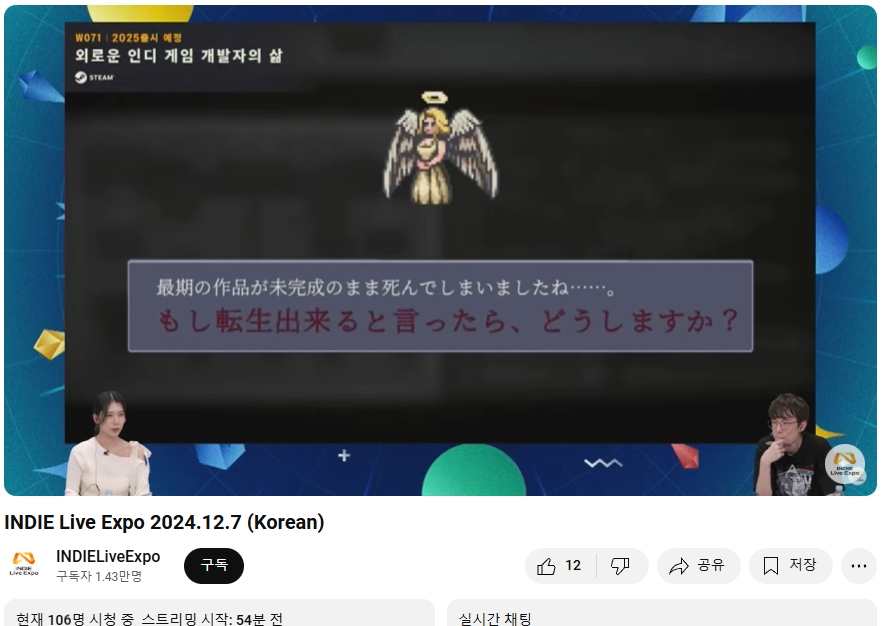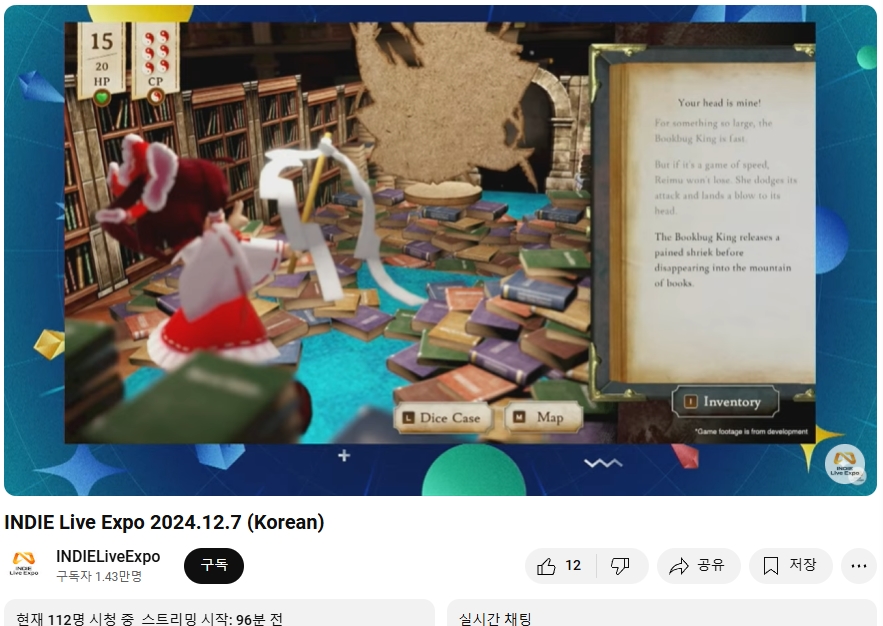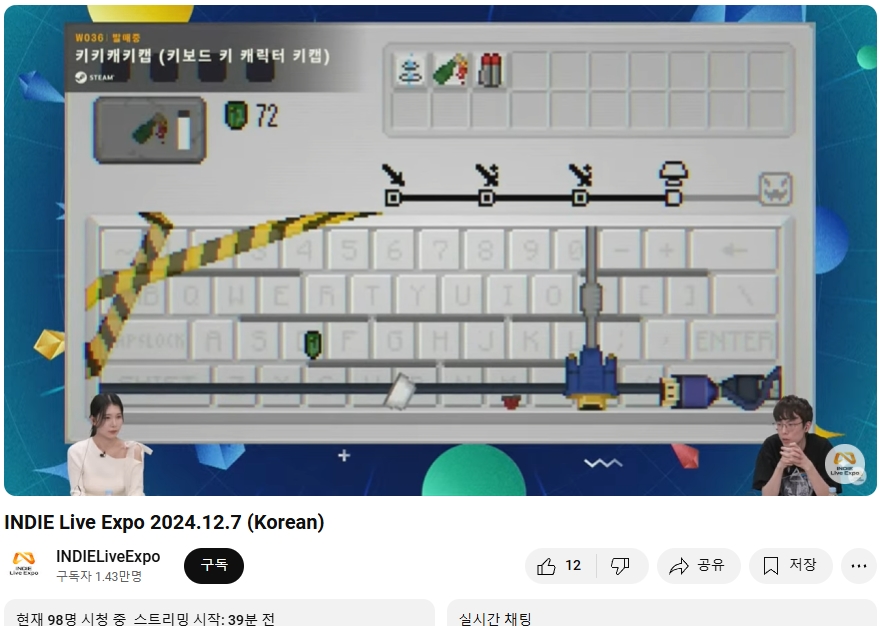 ○ 관련 : https://simugung.tistory.com/283 인디 라이브 엑스포 (INDIE Live Expo) 2024 방송 중, 스팀 세일 등도 함께 개시 (2024. 5. 25.)