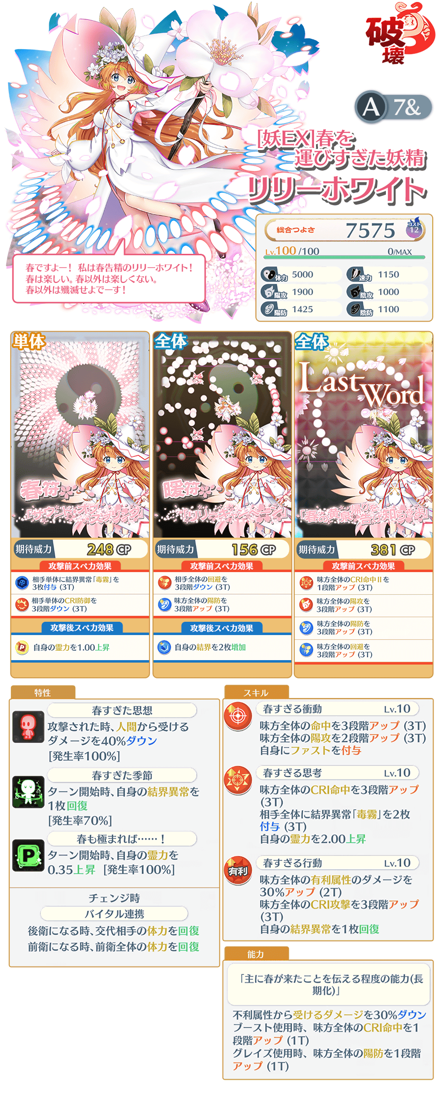 「東方LostWord」をご利用いただき、誠にありがとうございます。 2024年12月6日のメンテナンスにて、 下記内容の更新を実施しました。 ◆アップデート内容 「過剰なくらいに春なのです EXフェ
