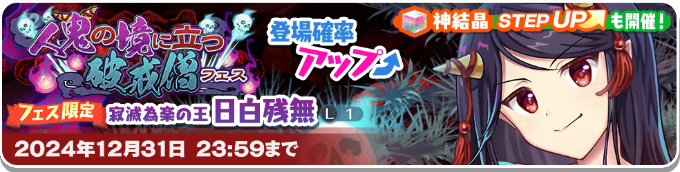 「東方LostWord」をご利用いただき、誠にありがとうございます。 2024年12月20日のメンテナンスにて、 下記内容の更新を実施しました。 ◆アップデート内容 「人鬼の境に立つ破戒僧 フェス」