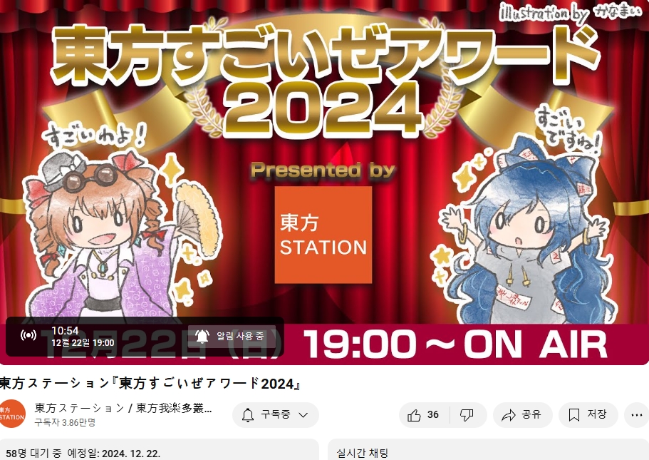 내일(12/22) 동방스테이션 정규 방송이 있을 예정 '2024년의 동방 2차창작 되돌아보기'