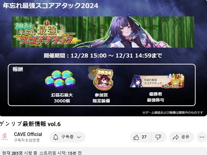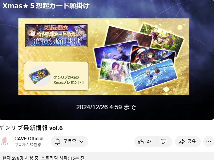 이후 26일에 게임 쪽도 업데이트 되어 위의 내용들 중 연말 부분 쪽이 업데이트 되었습니다.