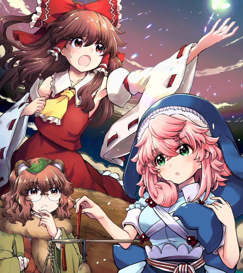 대문 일러스트에는 8권 발매 안내와 함께 레이무, 저울을 들고 있는 미요이, 마미조가 장식하였군요.