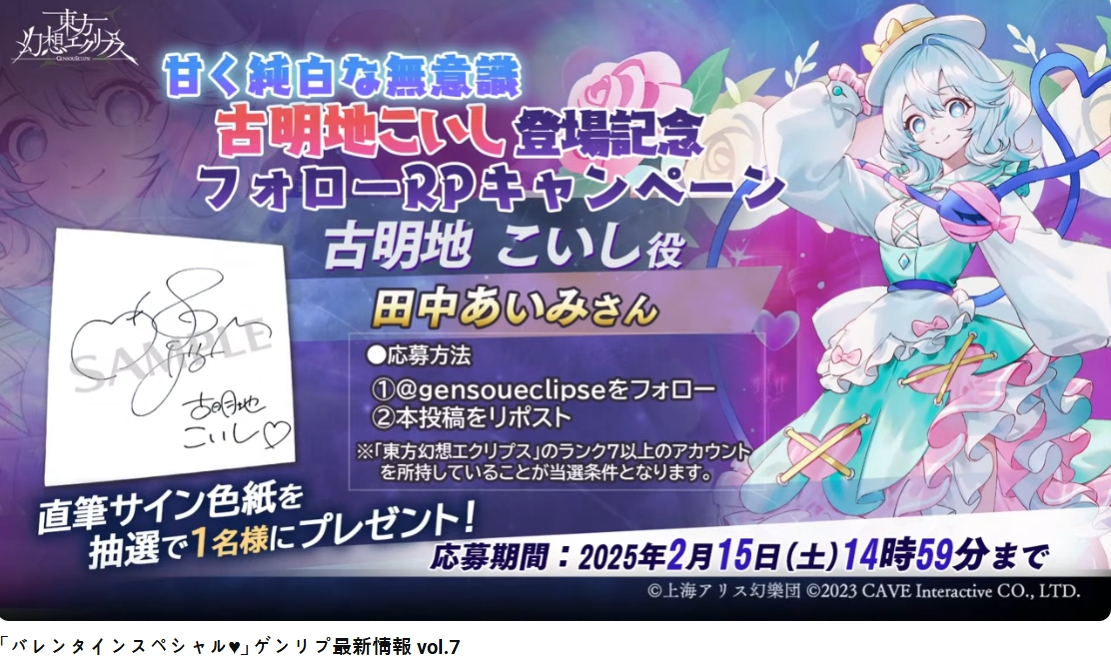 1/31 メンテナンス後~2/15 14:59まで#東方幻想エクリプス… pic.twitter.com/PNJMhf5ZFQ