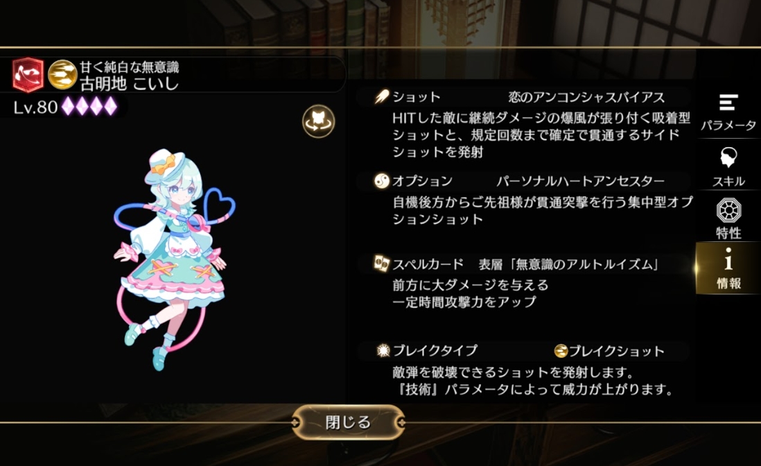 브레이크 : 샷 타입, 적탄을 파괴하는 샷 발사, 기술 스탯 계수