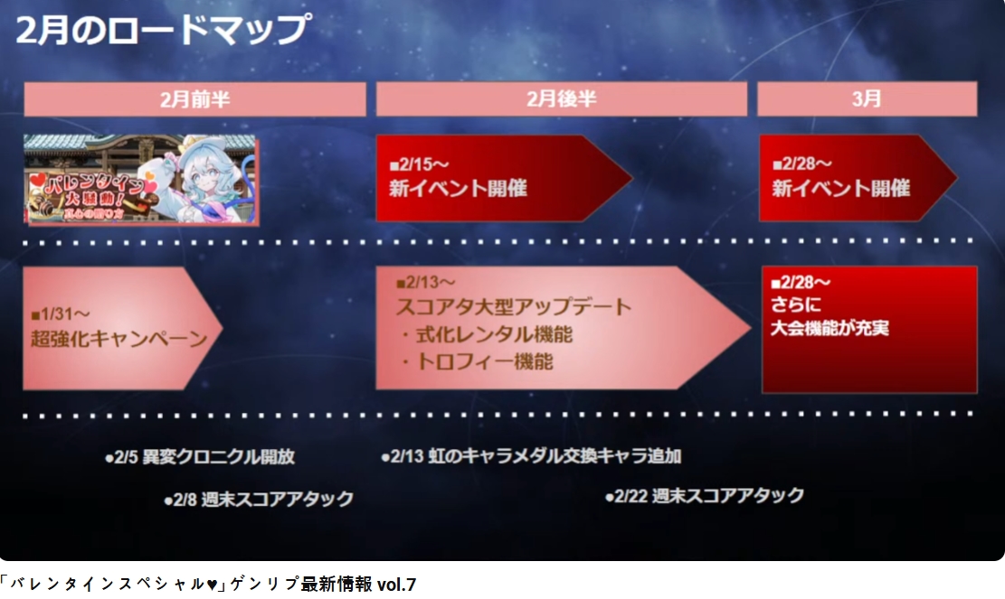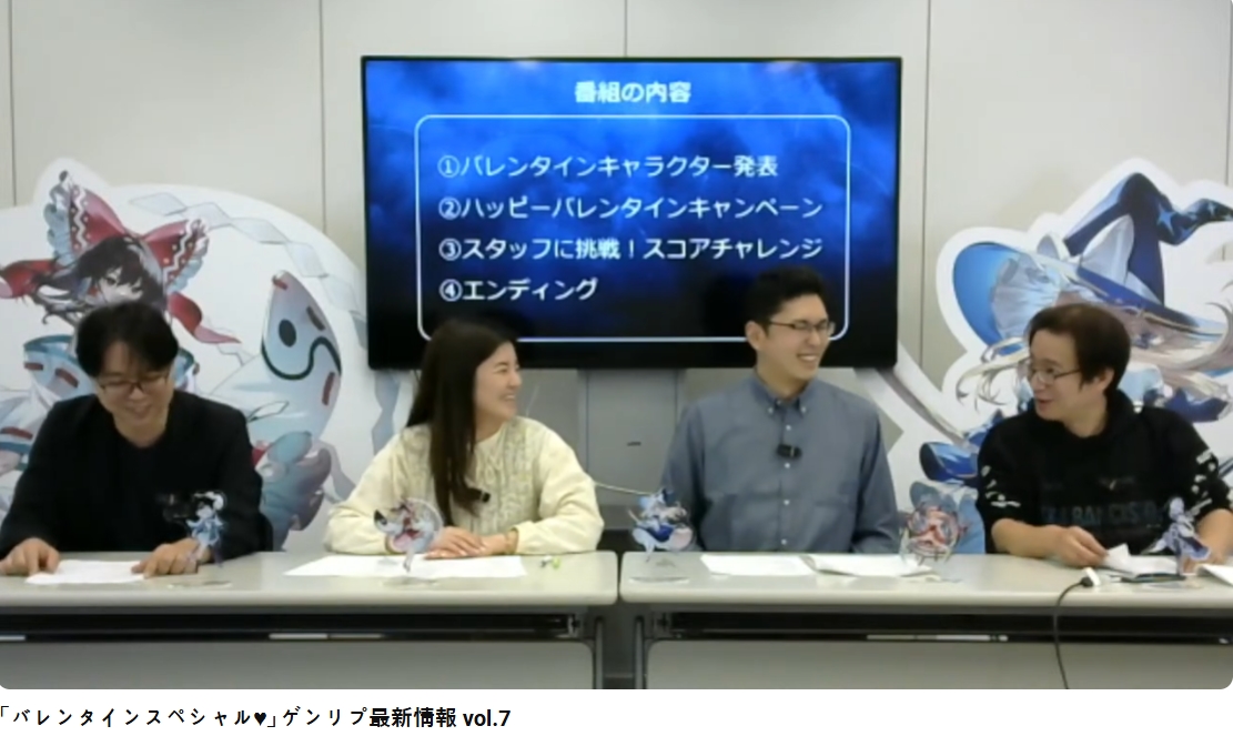 방송의 주요 내용은 발렌타인 관련 업데이트의 예고와 스코어 첼린지 소개 등이었고,