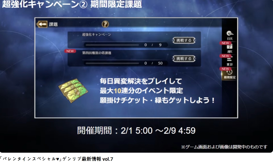 발렌타인 로그인 보너스, 최대 10연 뽑기 티켓 호기득