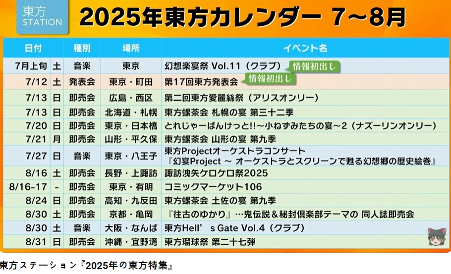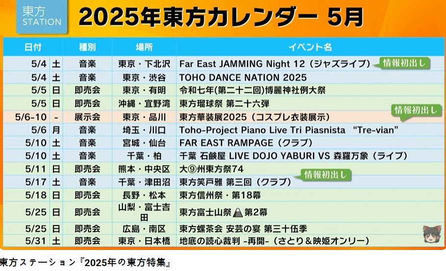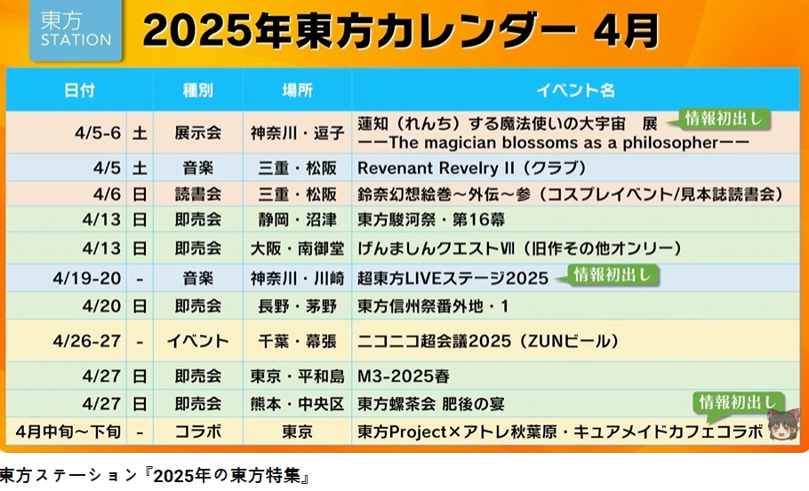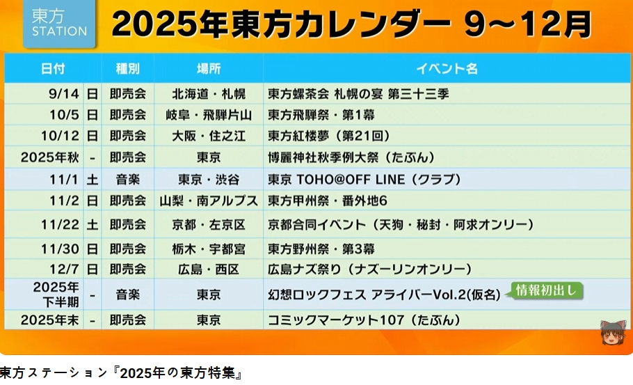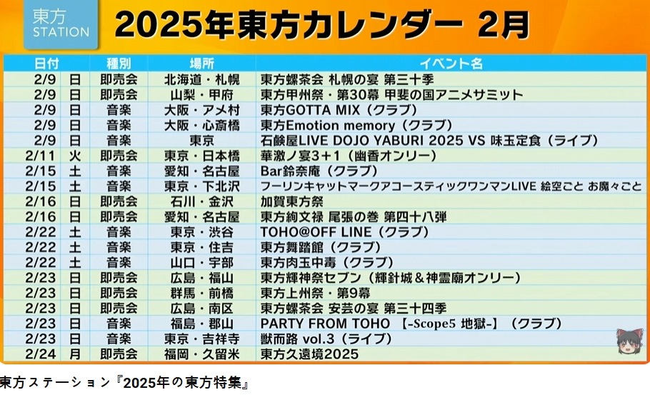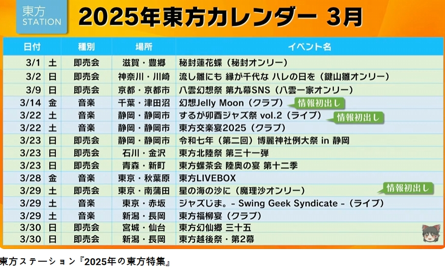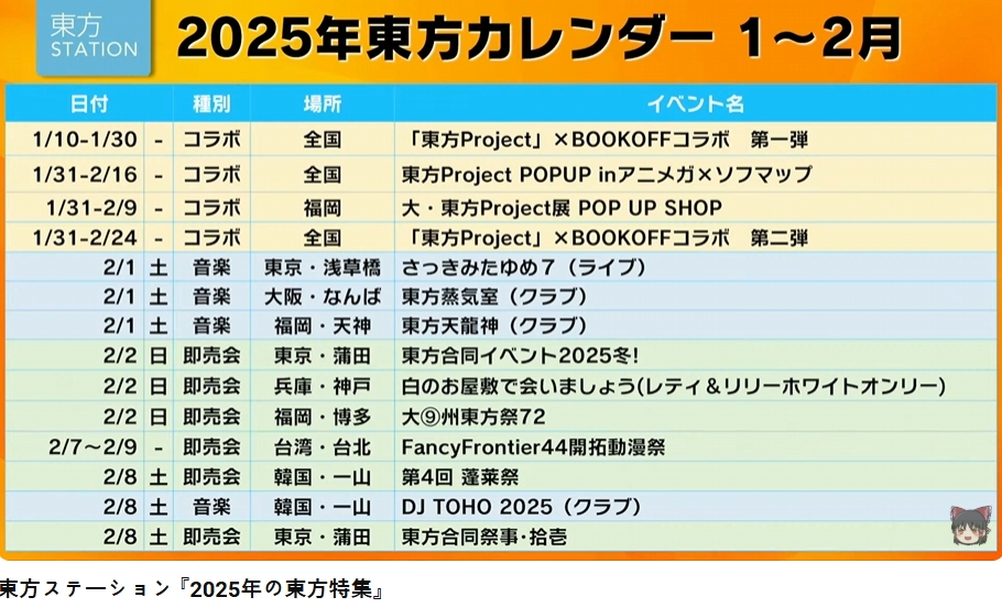 2025年の東方イベント目白押し!東方ステーション「2025年の東方特集」でご紹介した東方イベン