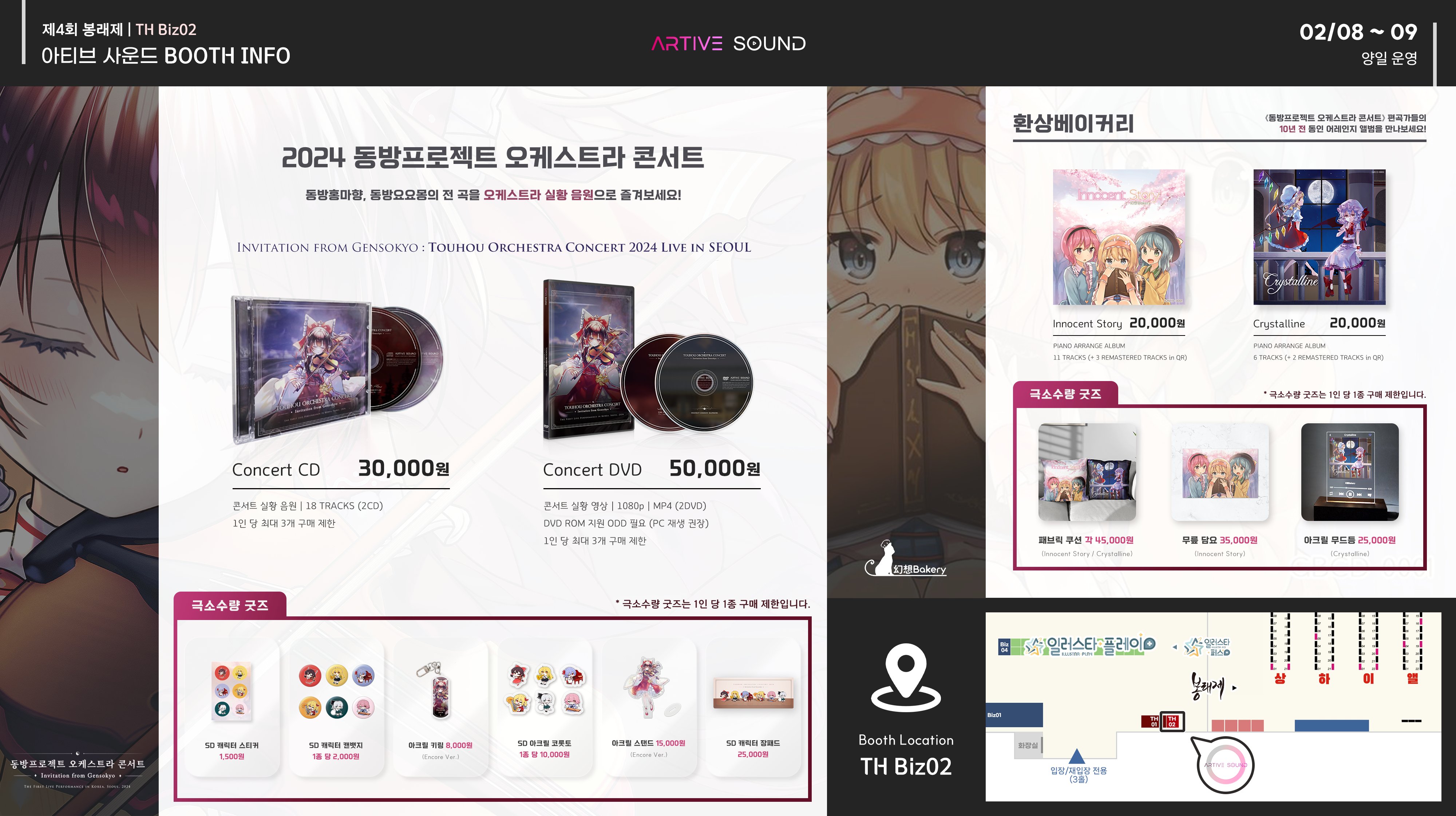 2024 동방프로젝트 오케스트라 콘서트 CD/DVD를 포함한 굿즈들과, 동케스트라 편곡가들의 10년 전 동인 앨범을 만나보실 수 있습니다 ✨