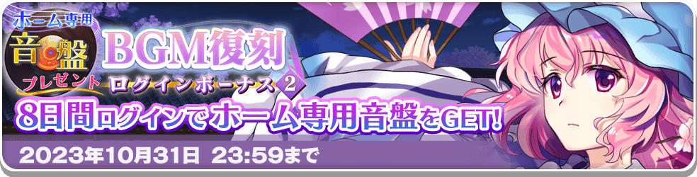 이번에 추가된 신규 MV 악곡을 홈화면 BGM으로 획득할 수 있는 로그인 보너스의 안내