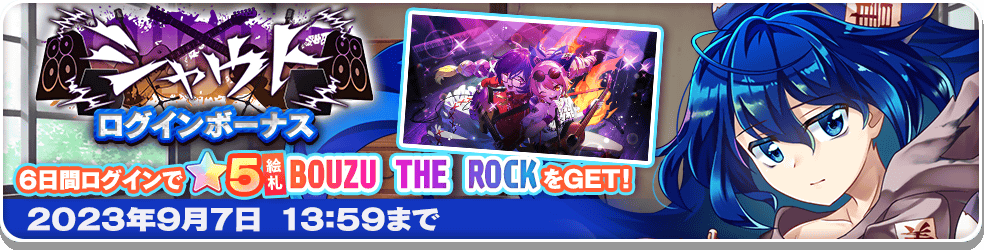 이벤트 로그인 보너스 후반전 (6일 로그인으로 5성 장비카드 [BOUZU THE ROCK] 1장 획득