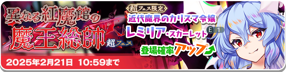 「東方LostWord」をご利用いただき、誠にありがとうございます。 2025年2月14日のメンテナンスにて、 下記内容の更新を実施しました。 ◆アップデート内容 「異なる紅魔館の魔王総帥 超フェ