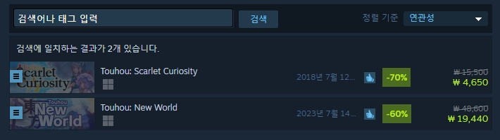 더불어 현재 할인중인 동방 게임들도 있었으니 역시나 함께 참고해주시기 바랍니다.