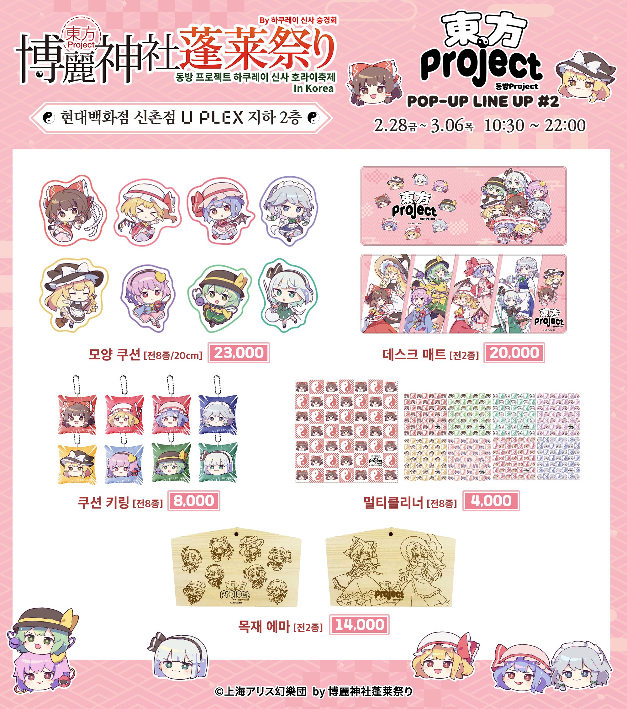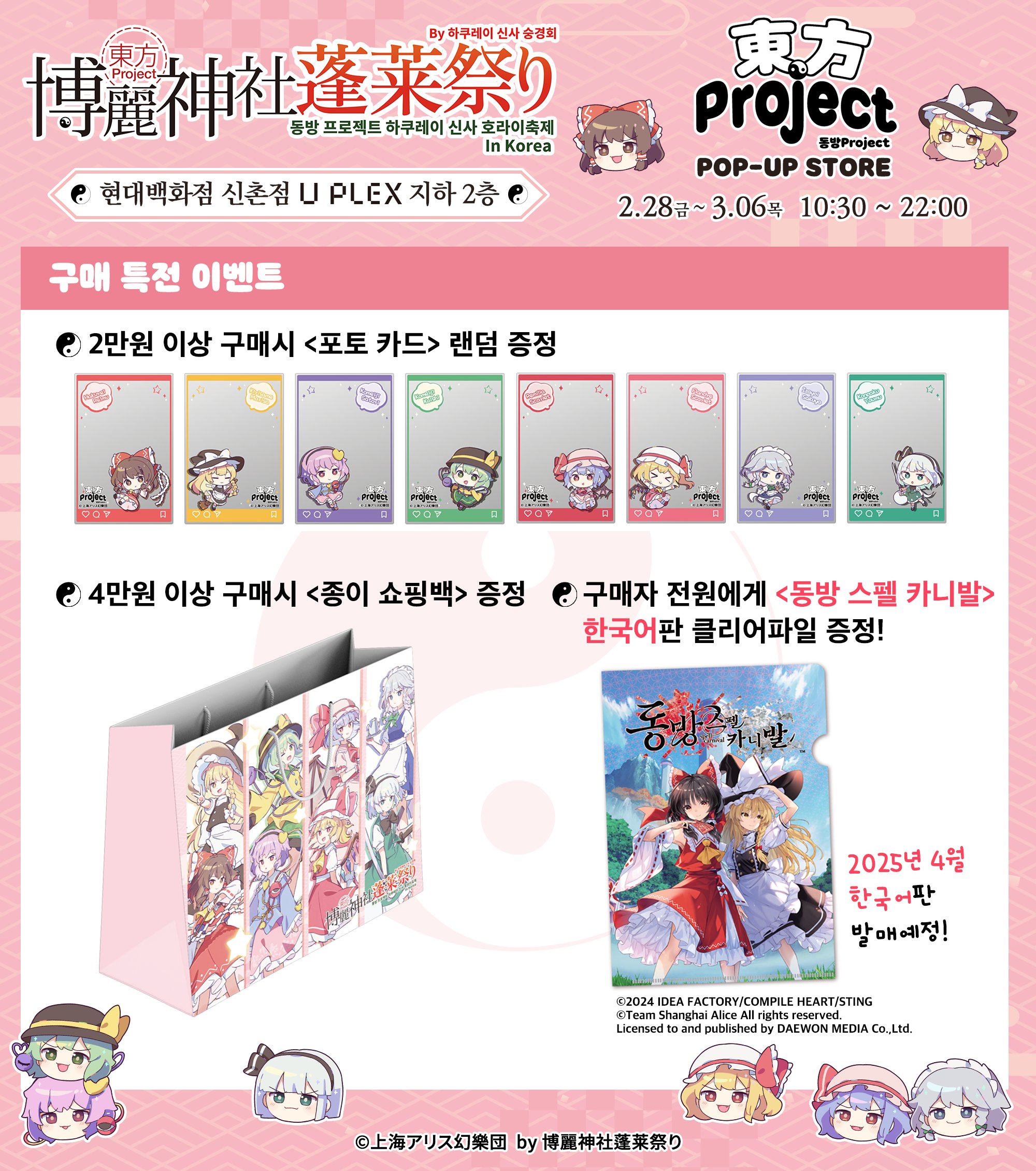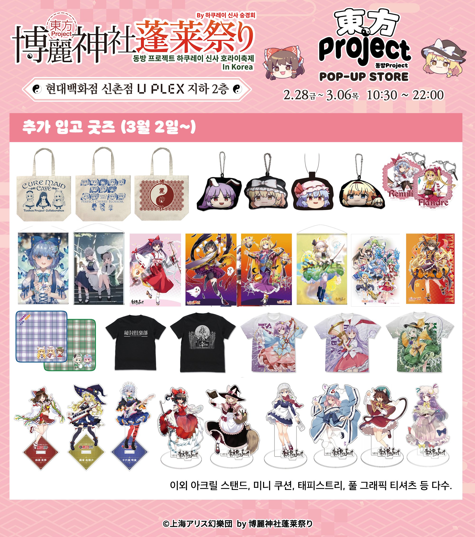 ○ 관련 : https://simugung.tistory.com/570 국내에서 동방 굿즈 팝업 스토어가 열려, 「하쿠레이 신사 호라이 축제」 정보 공개(서울 신촌, 2/28~3/6)