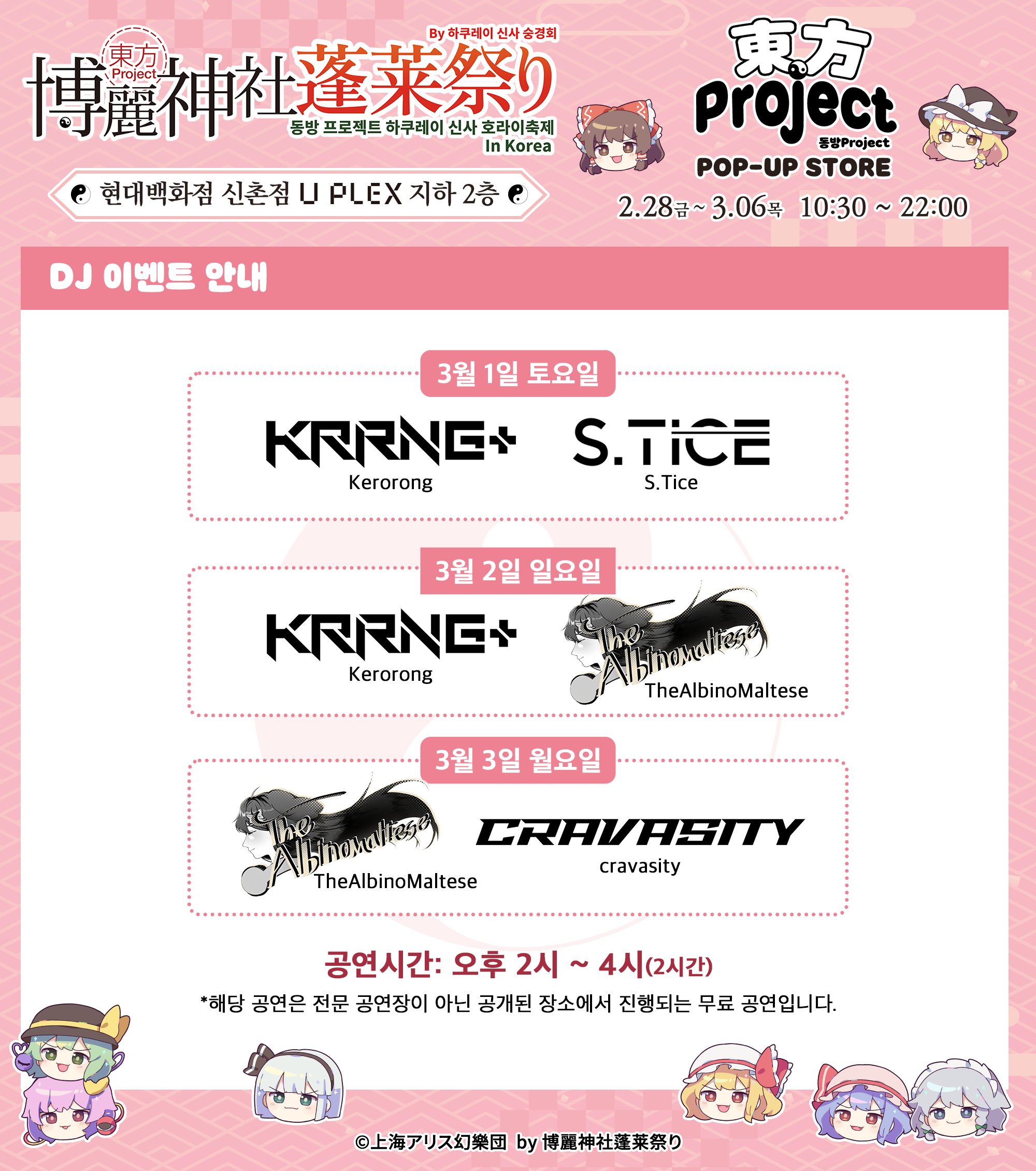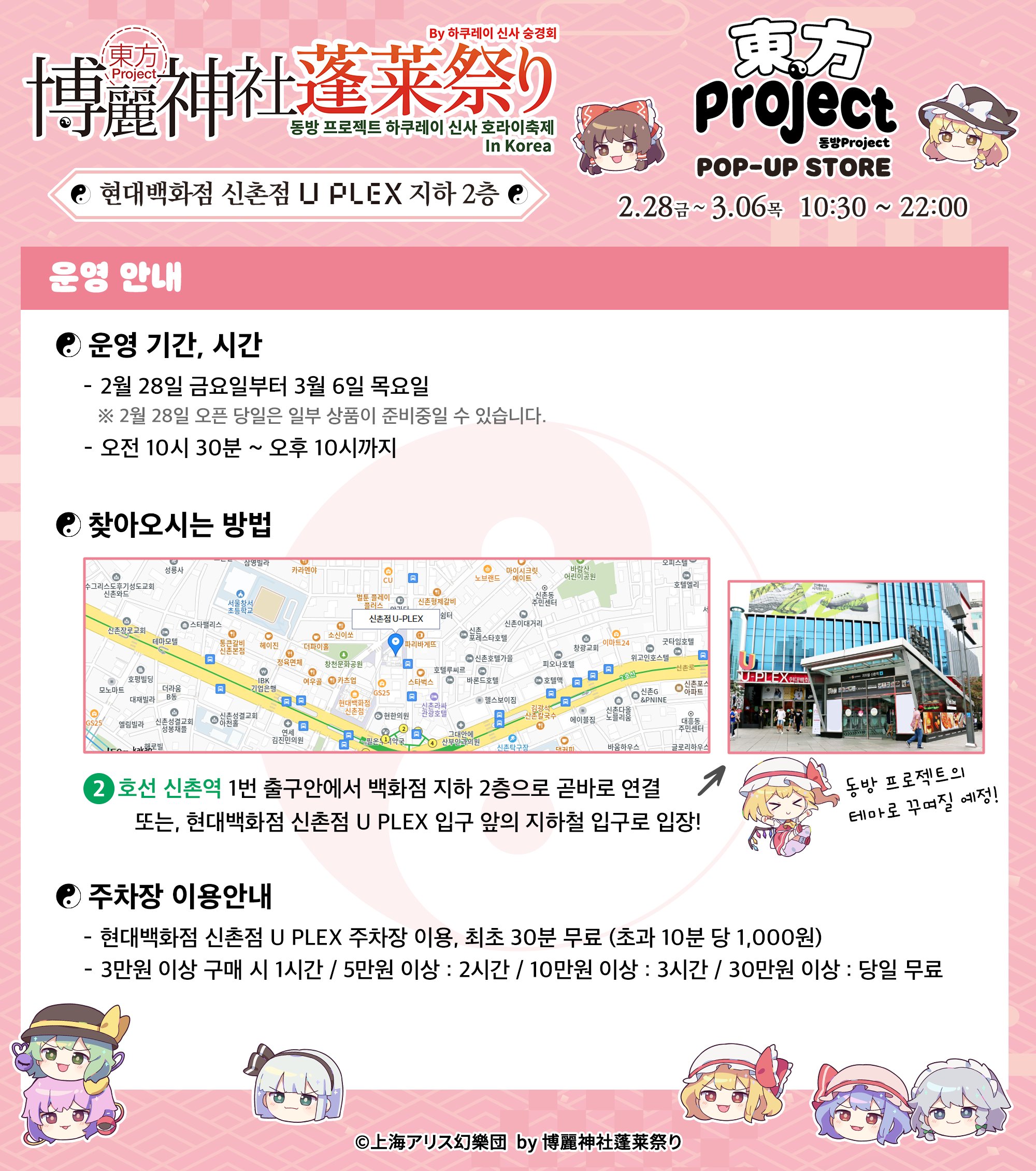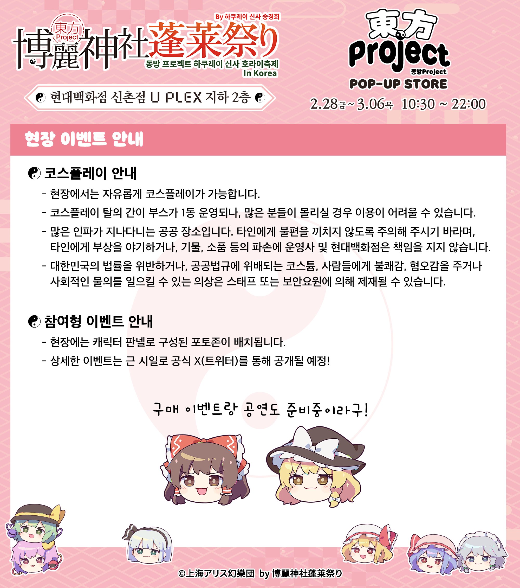 ○ 관련 : https://simugung.tistory.com/570 국내에서 동방 굿즈 팝업 스토어가 열려, 「하쿠레이 신사 호라이 축제」 정보 공개(서울 신촌, 2/28~3/6)