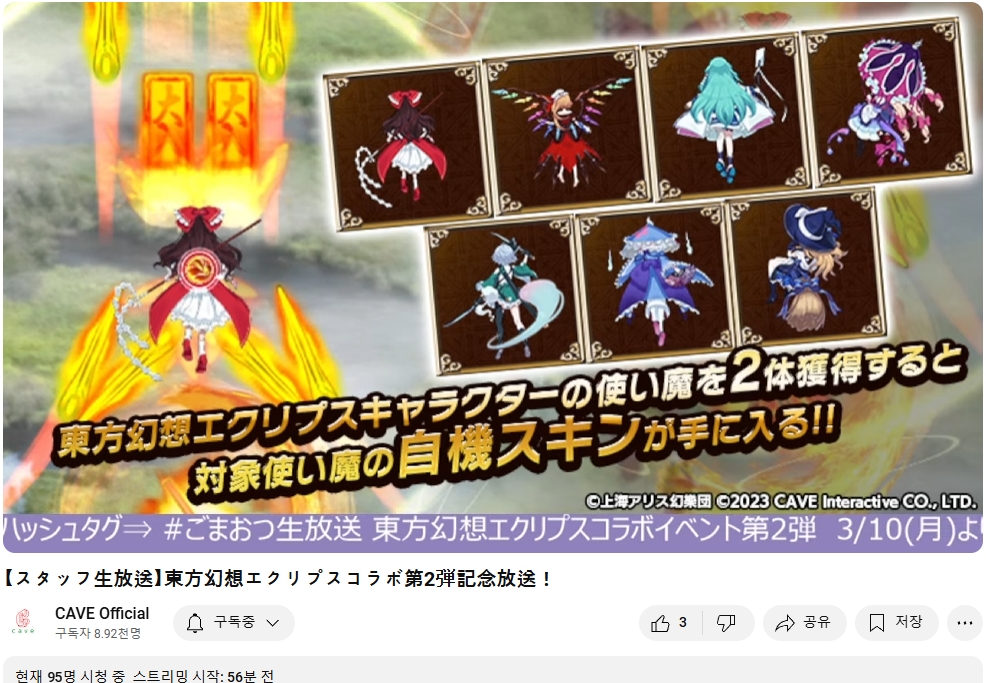 지난번 동방환상이클립스 정보 방송 때 소개되었던 고딕은 마법소녀 동방 콜라보 이벤트가 3/10 (월) 오늘부터 개시된 모양이었습니다.