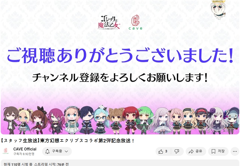 이에 앞서 지난 3/7 (금) 에 콜라보 정보 등을 다룬 고딕은 마법소녀 정보 방송이 있었습니다.