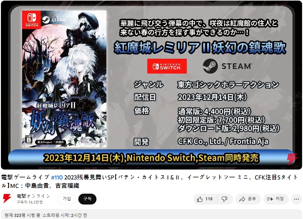 홍마성 레밀리아2 요환의 진혼가와 관련하여 조금 전 있었던 전격 측의 생방송으로 정보 공개가 있었습니다.