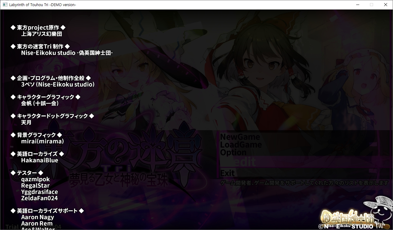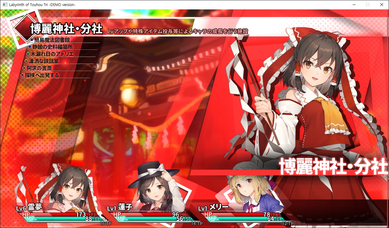 4월 10일 오늘부터 동방프로젝트 2차창작 DRPG 동방의 미궁 Tri 체험판의 배포롤 개시 했습니다! 스팀, DL사이트 등지에서 현재 공개중 입니다.