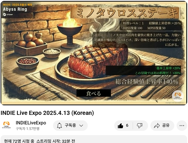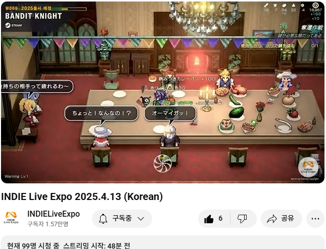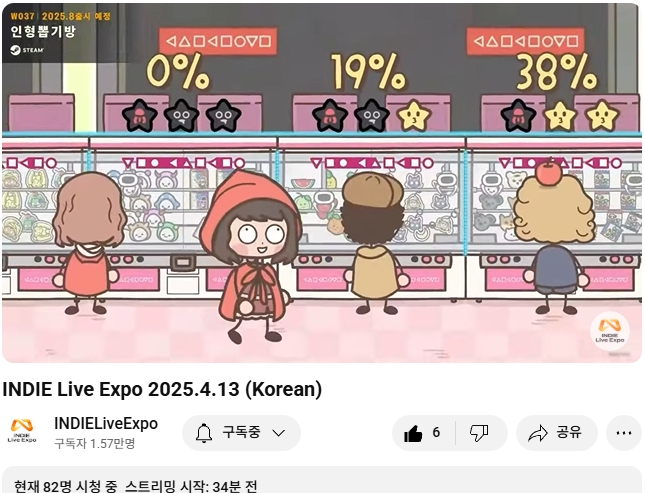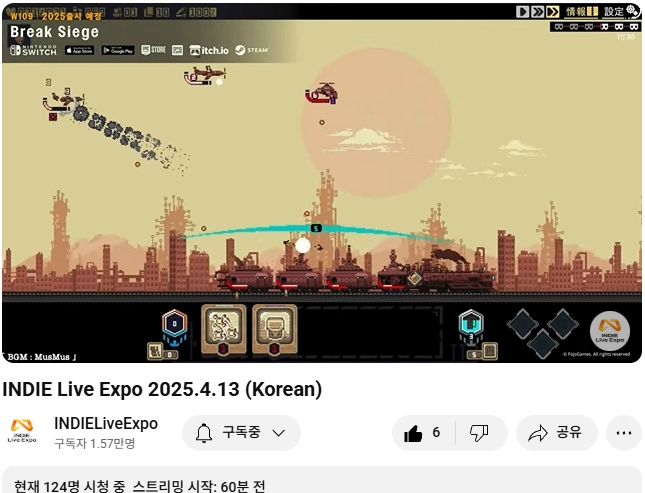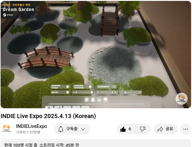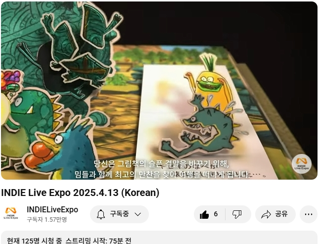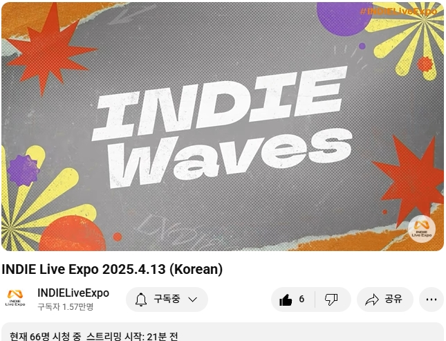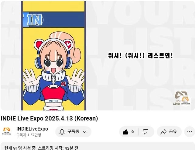 아래글에서 안내드린 인디 라이브 엑스포 2025 방송이 13일 (일) 18시무렵부터 시작이 되었습니다.