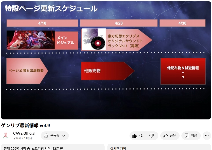 지난 사토리 업데이트 후로 잠시 뜸했던 케이브의 동방환상이클립스 쪽으로 업데이트 정보 방송 및 업데이트 (4/16) 예정이 있었습니다.