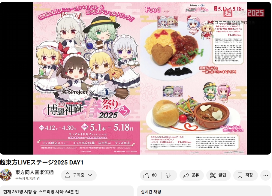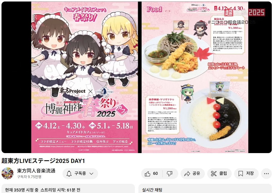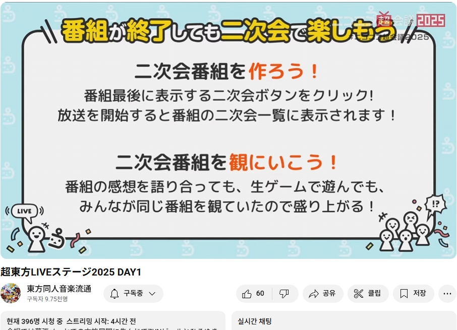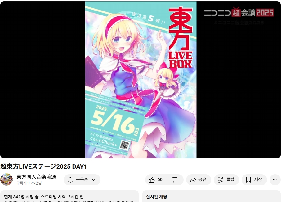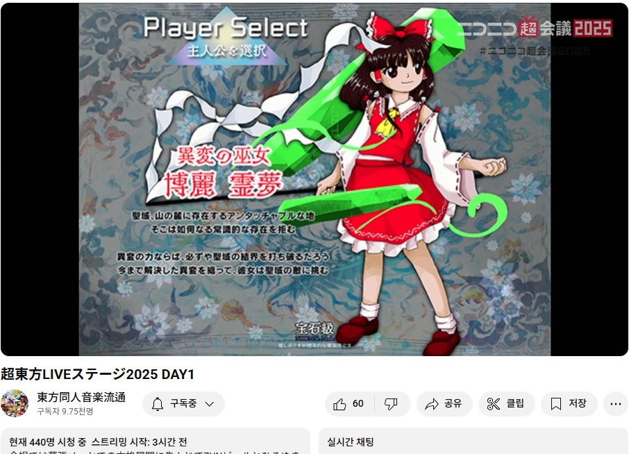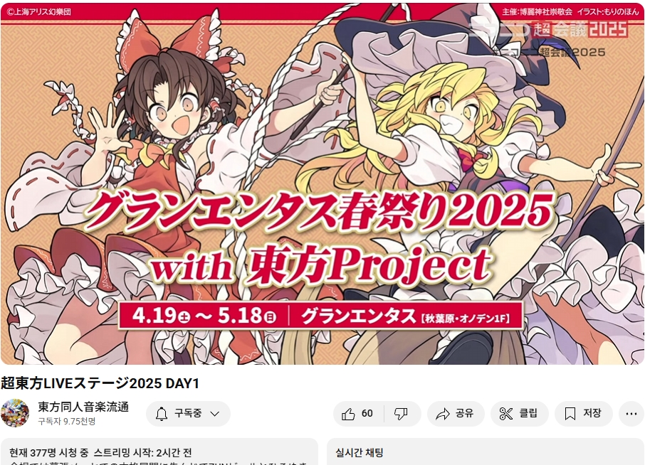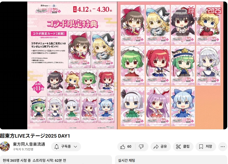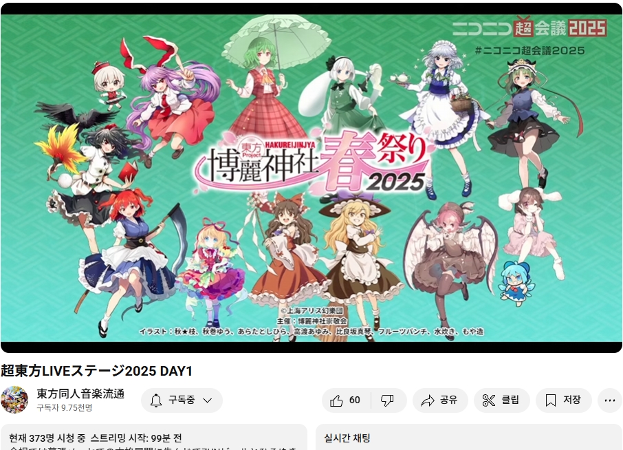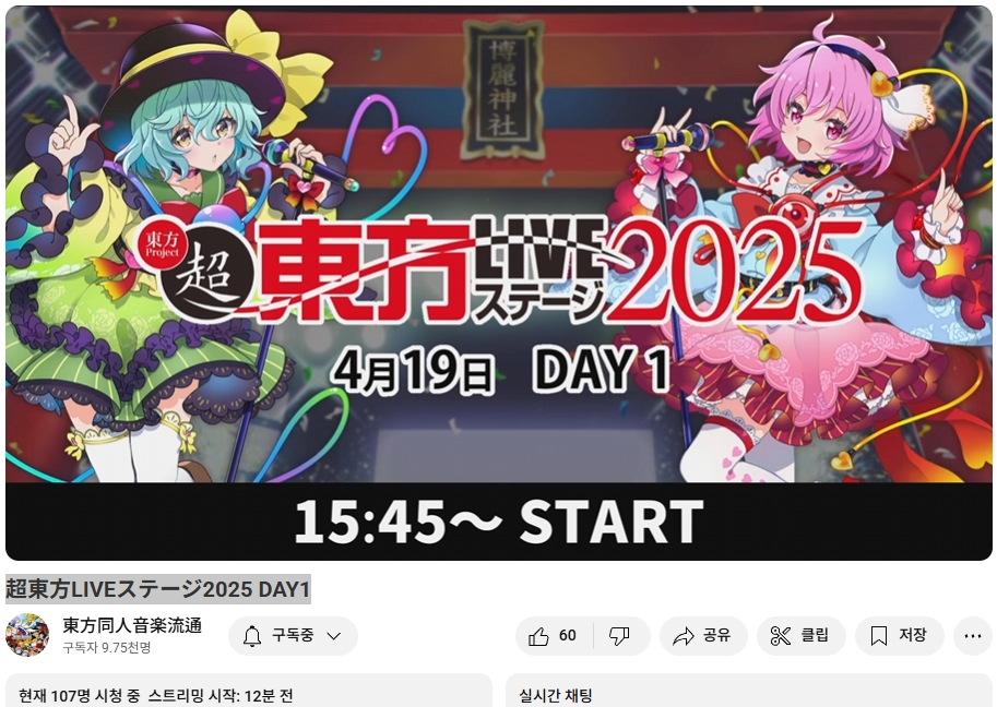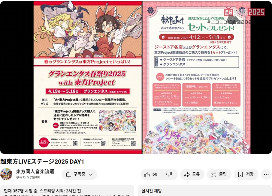 ○ 관련 : https://simugung.tistory.com/640 초 동방 라이브 스테이지 2025, 라이브의 생중계도 있는 모양 (4/19~20)