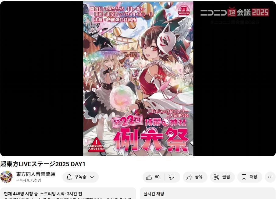 이번 라이브는 동방동인음악유통 측의 유트브 페이지를 통해서도 생중계 예정이었습니다.