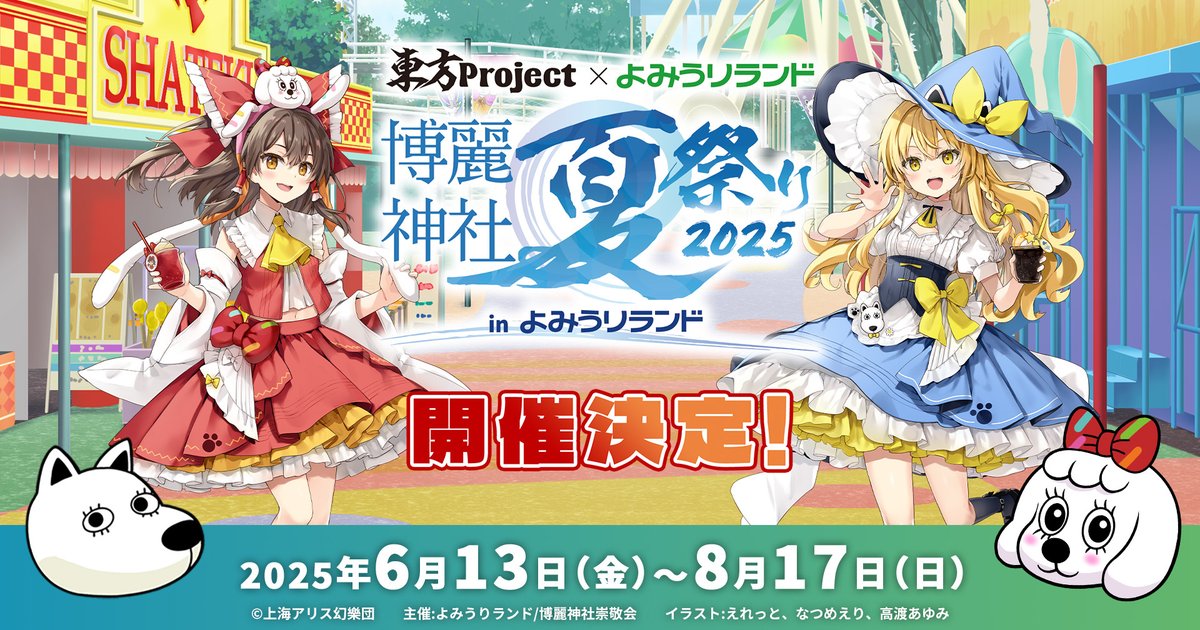 東方Project×よみうりランド「博麗神社夏祭り2025inよみうりランド」開催決定!描き下ろし新作グッズやコラボフード、アトラクションコラボなどを実施!皆さまのご来場をお待ちしておりま