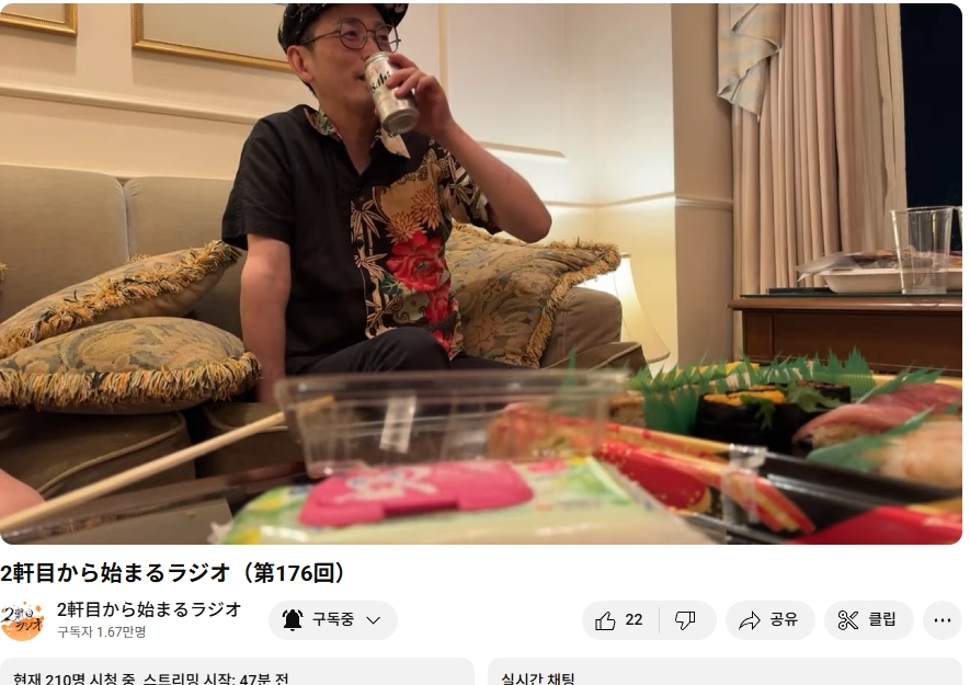 이번은 식당은 아니고 숙소 방에서의 방송 같군요?