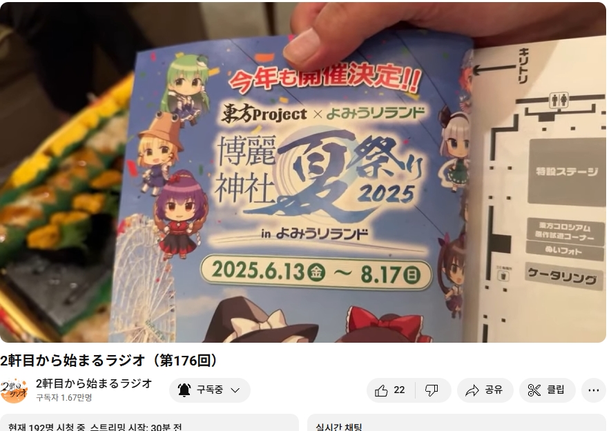 | 니코니코초회의2025 1일차, ZUN맥주 및 동방스테이션 출장 방송 등 (1) | 2025.04.26 |