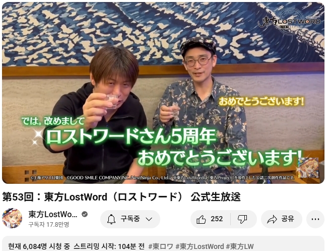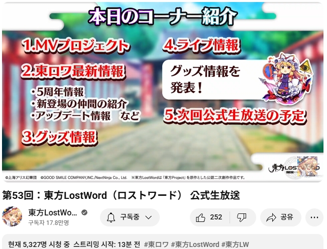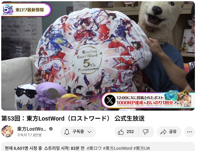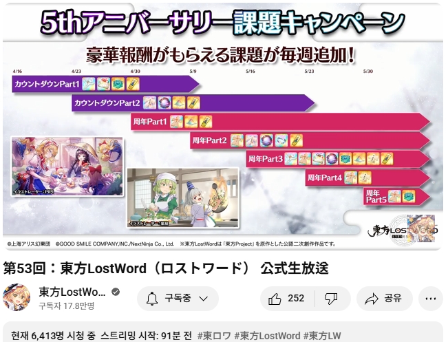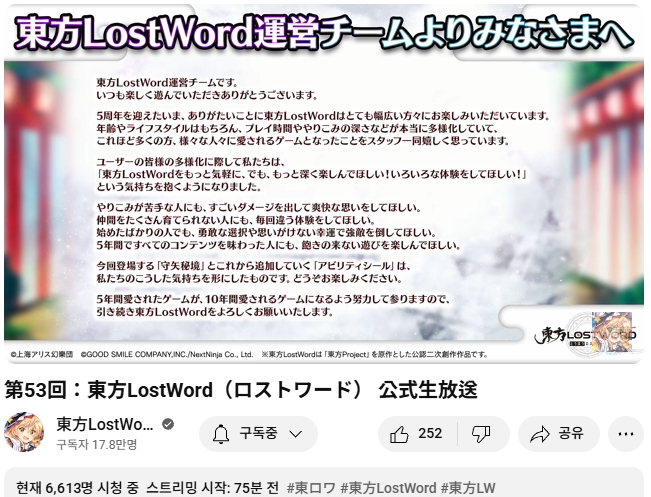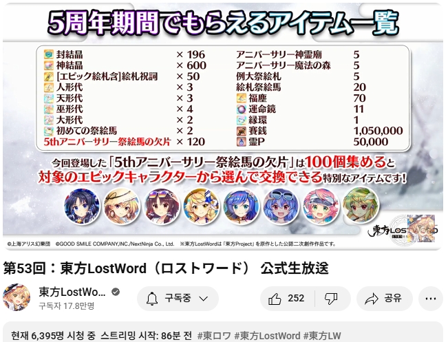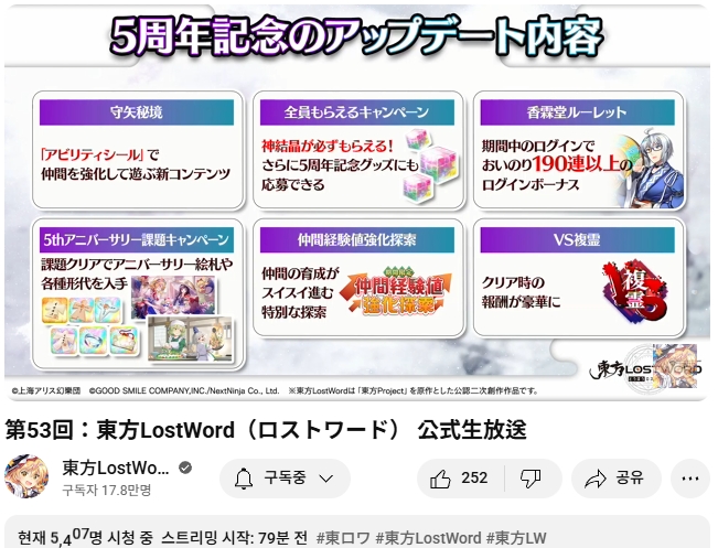 (5주년) "앞으로도 동방로스트워드를 잘 부탁드립낟"