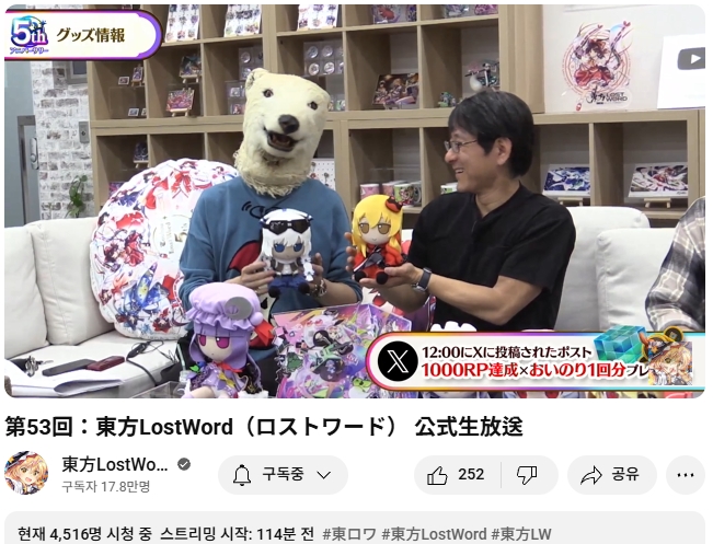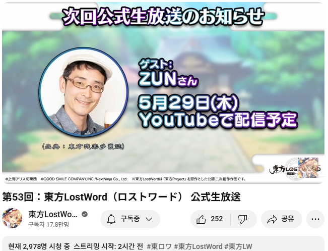 ZUN님이 게스트로 등장 예정이었습니다. 출전이 가라쿠타총지로 되어 있군요...?