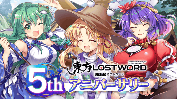 「東方LostWord」をご利用いただき、誠にありがとうございます。 2025年4月30日のメンテナンスにて、 下記内容の更新を実施しました。 ◆アップデート内容 東方LostWord 5thアニバーサリー! 開