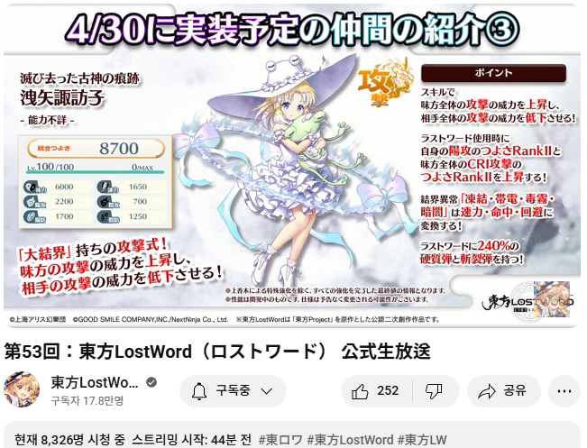 로스트워드의 캐릭터 커버 폭은 어디까지 커지는 것인가...!