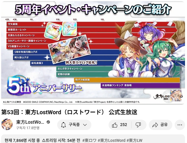 5주년 이벤트와 캠페인 관련 스케쥴 소개