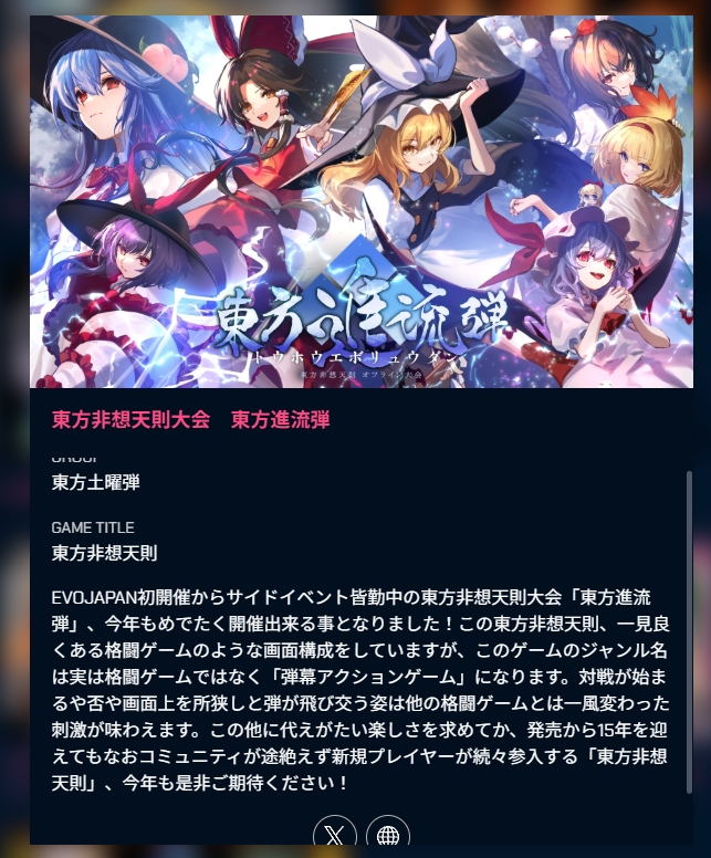 EVO 재팬 2025 사이드 이벤트 동방비상천칙 대회 '동방진류탄' 오피셜 페이지