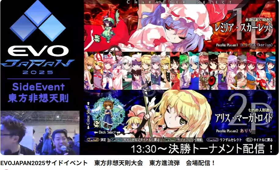 5/11 (일) 오늘 개최 예정인 EVO JAPAN 2025 행사의 사이드 이벤트 동방비상천칙 대회인 동방진류탄(東方進流弾) 과 관련하여,