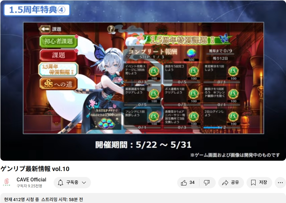 1.5주년 특전 (4) : 특별 과제 (5/22 ~ 5/31)