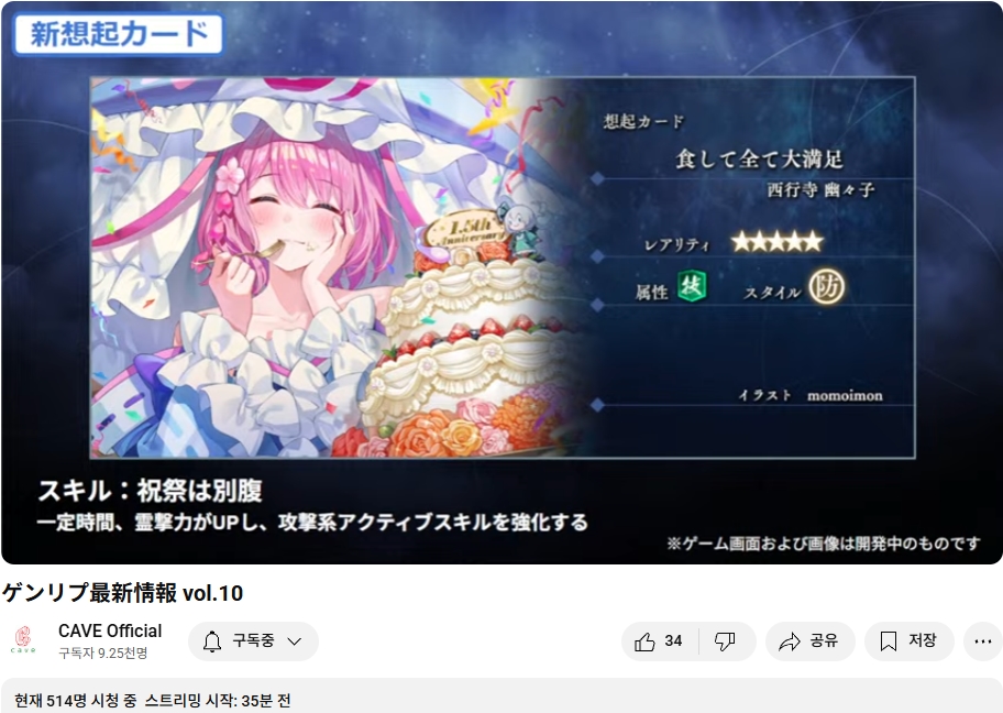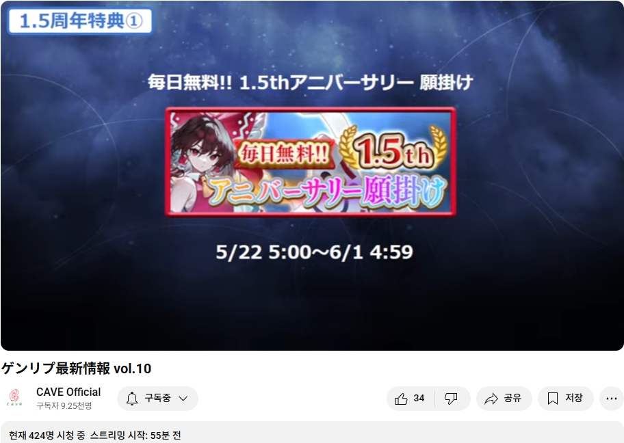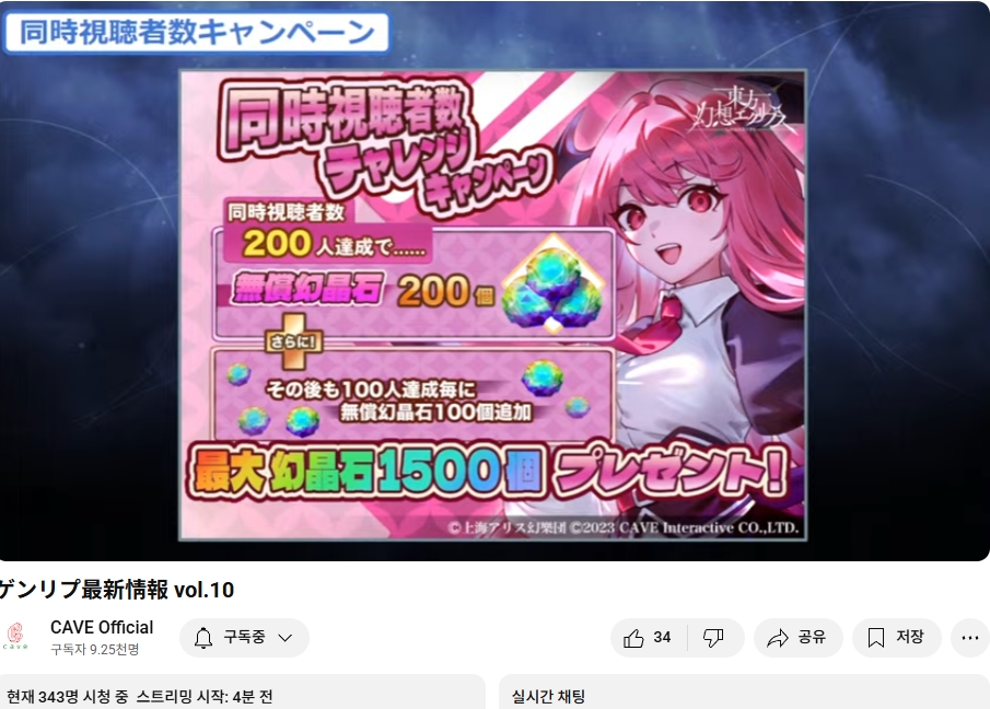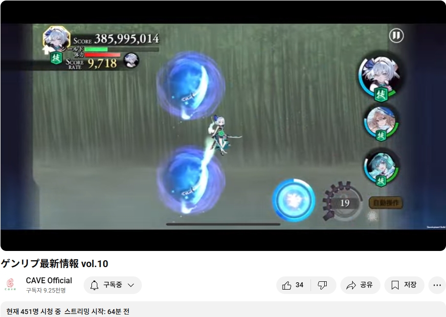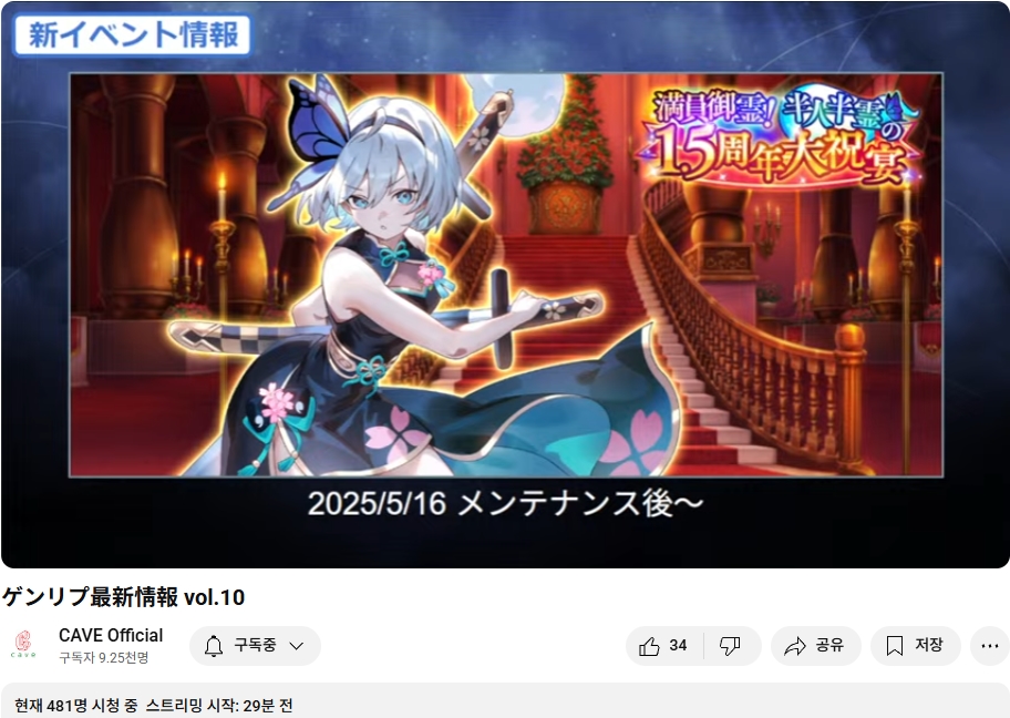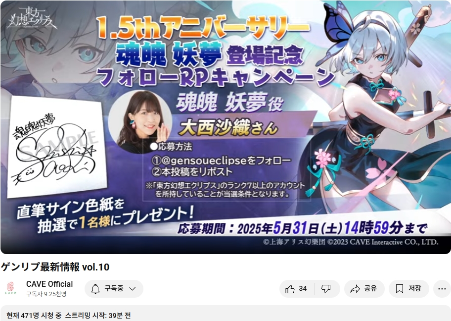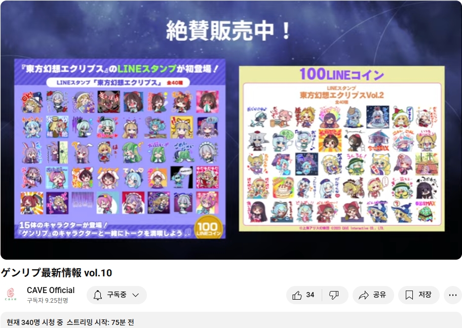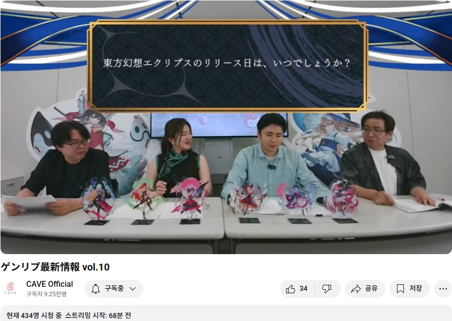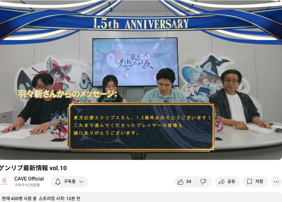 5월 15일 (목) 오늘 19시부터 케이브의 동방 2차창작 스마트폰용 슈팅게임인 동방환상이클립스의 업데이트나 최신 정보 등을 다루는 정보 방송이 있었습니다.