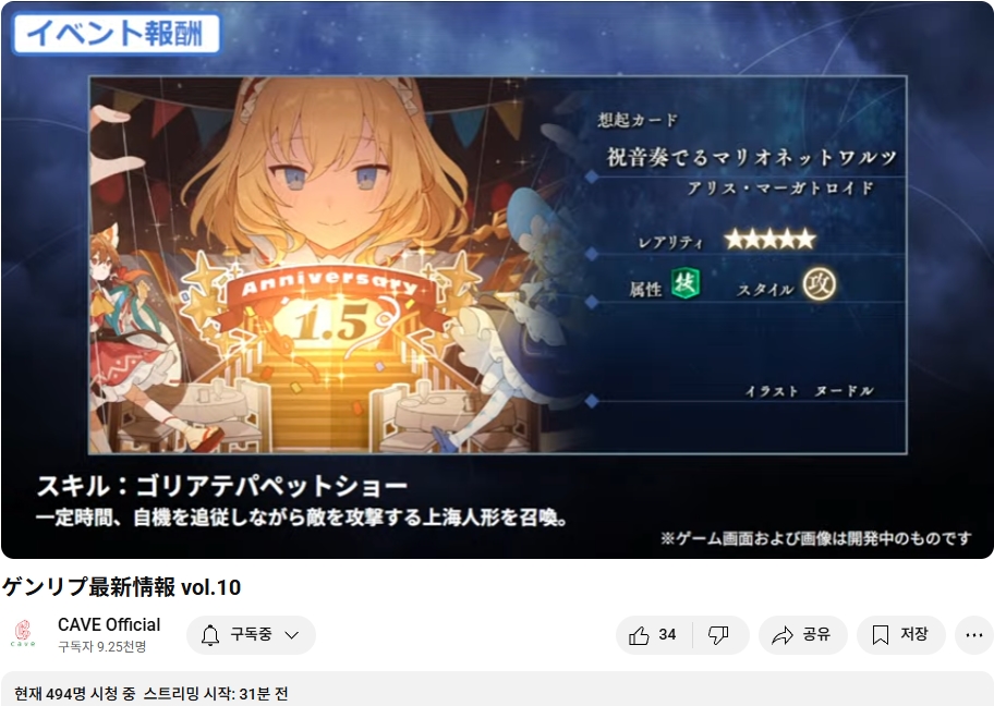 1.5주년 이벤트의 보상 상기카드 : 축하 음악을 연주하는 마리오넷 왈츠 (앨리스 카드)
