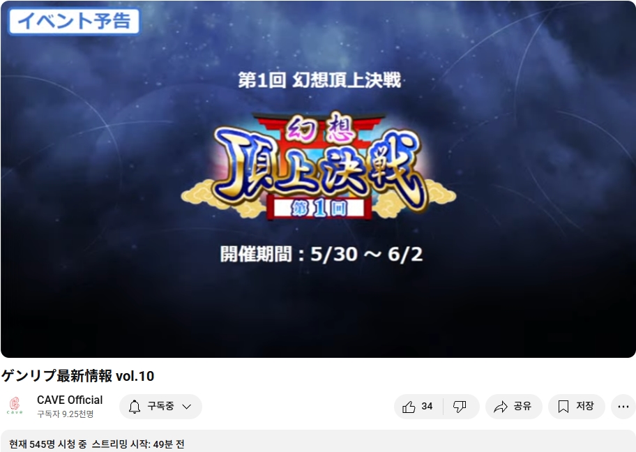 | EVOJ2025 사이드 이벤트의 천칙 대회(동방진류탄), 오늘(5/11) 10시부터 개시, 실황 중계도 (3) | 2025.05.11 |