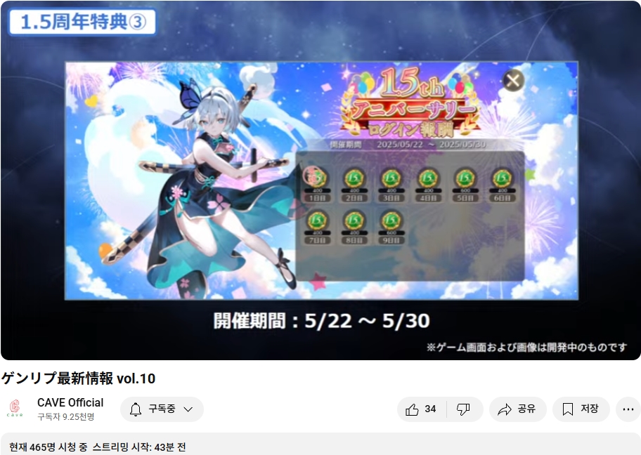 1.5주년 특전 (3) : 주년 기념 로그인 보너스 (5/22 ~ 5/30)